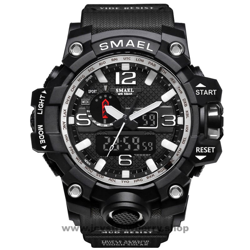 أدوات زينة - ساعة يد رجالية - متعددة الوظائف - كوارتز - مضادة للصدمات - مضادة للأمطار - ستانلس ستيل - علبة - سمايل 1545 - رمادي/أبيض - أحمر/أزرق