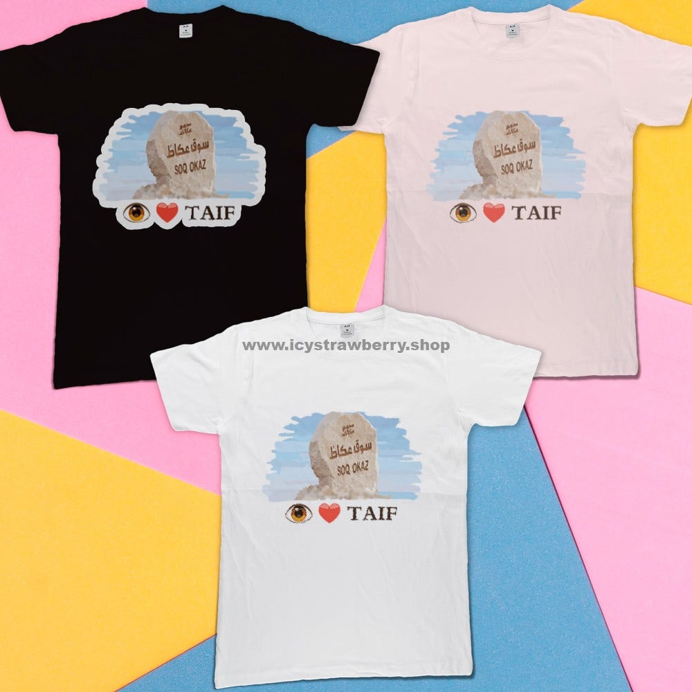 garments - shirt - t-shirt - cotton - unisex - white - pink - black - souvenir - saudi arabia landmarks - taif - al-hada road - soq okaz - shupra castle