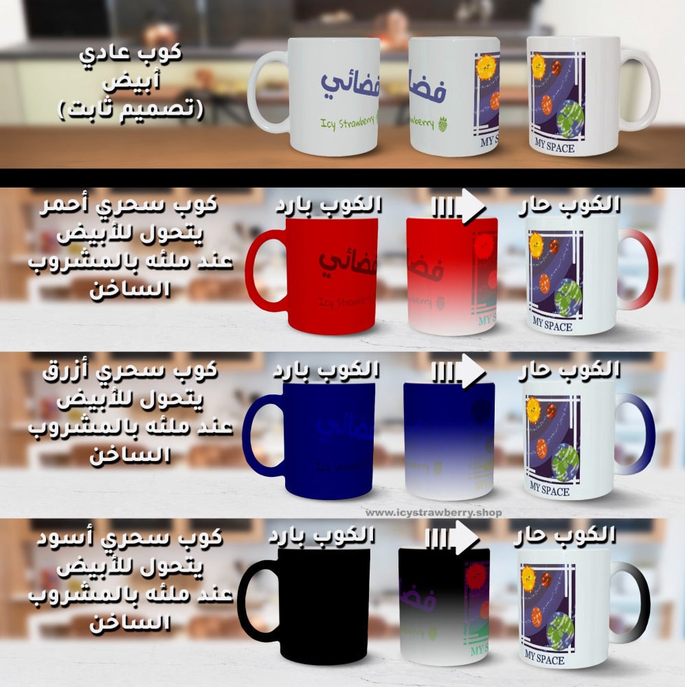 Mugs with cute designs exclusive to Icy Strawberry Shop. A nice present to your family members, friends, and workmates