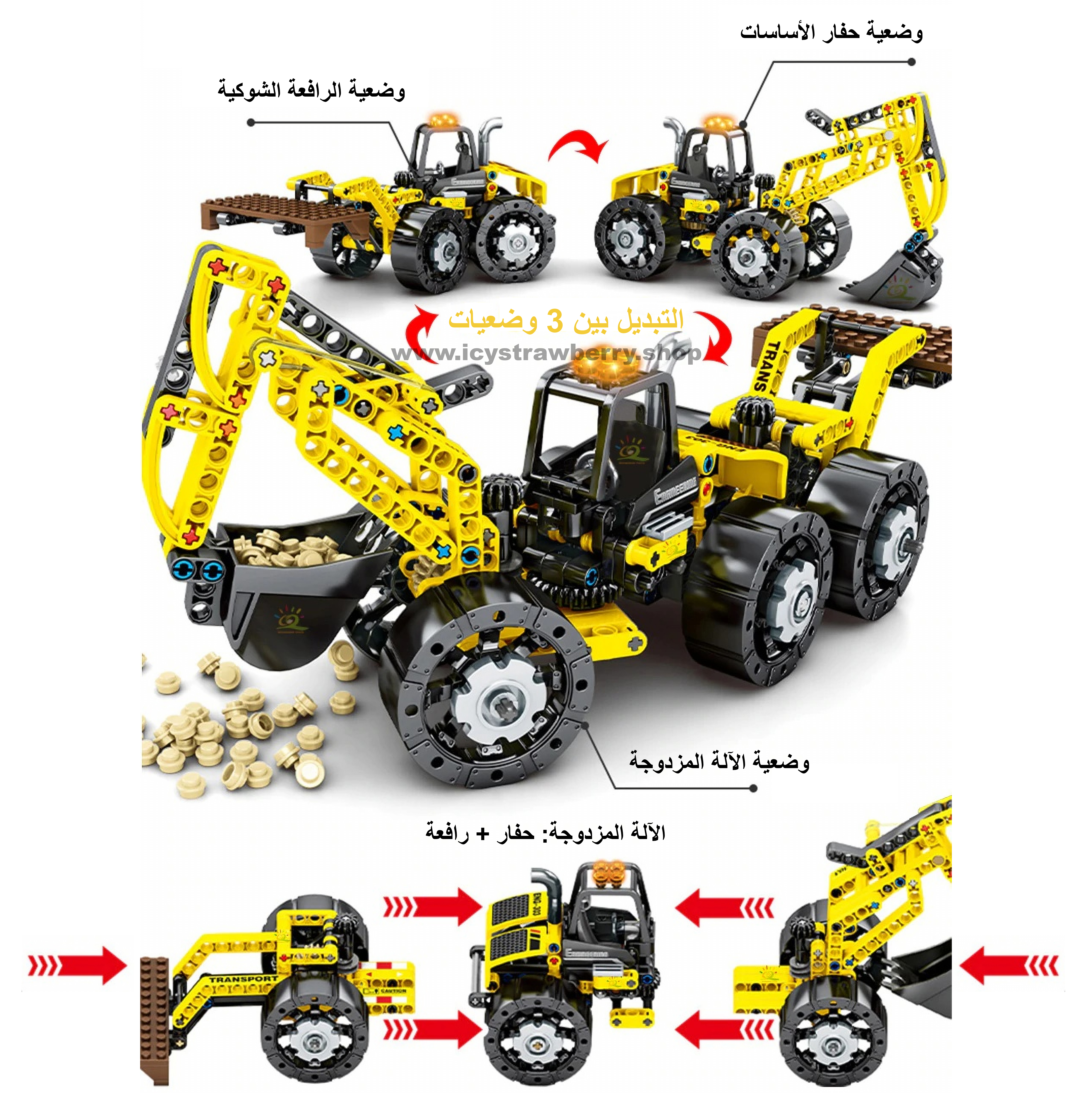 assembly toy - lego - safe plastic material - no box - user manual - 3 in 1 excavator forklift dual