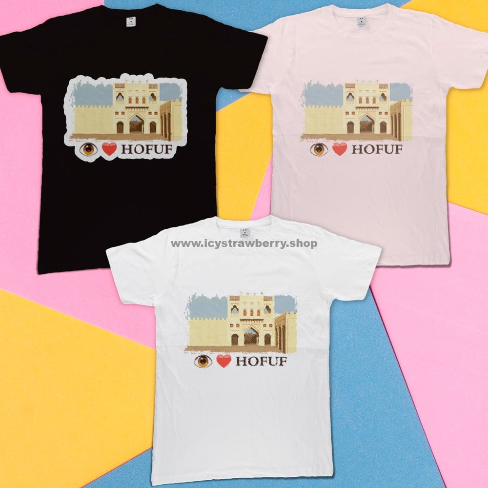 garments - shirt - t-shirt - cotton - unisex - white - pink - black - souvenir - saudi arabia landmarks - hofuf - qaisariah
